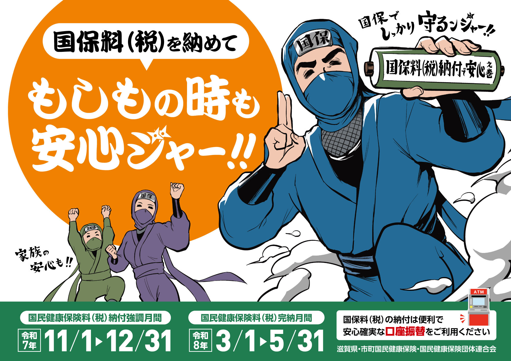 国民健康保険料(税)完納月間3月1日(日)~5月31日(日)にかけて、びわ湖放送、エフエム滋賀にて本会CMが放送されますのでぜひご覧ください!
